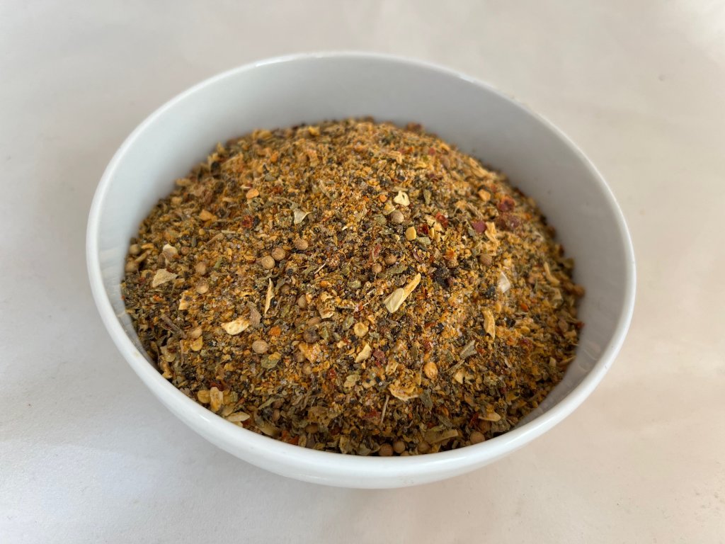 SLOŽENÍ: Sůl 30%, chilli semínka, HOŘČICE bílá, pepř černý mletý, chilli plátky, cibule, koriandr, oregano, bazalka, paprikové floky červené.