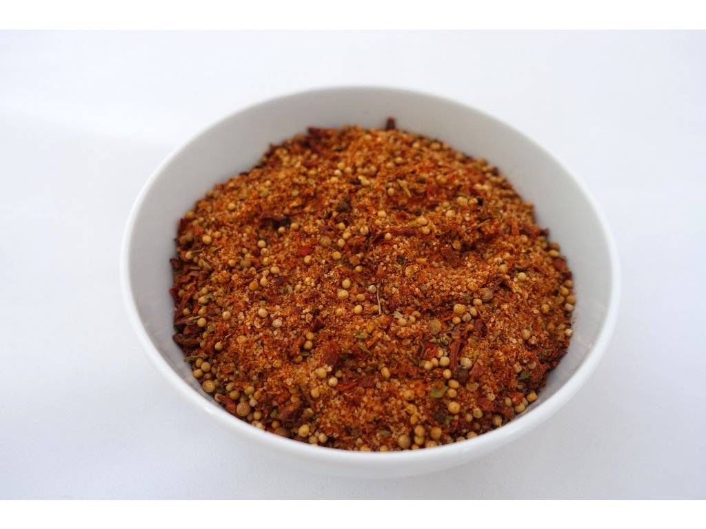 SLOŽENÍ: Sůl max. 37%, HOŘČICE bílá, paprikové floky červené, glutaman sodný, paprika, kmín, koriandr, pepř černý, petrželová nať, chilli, saturejka.