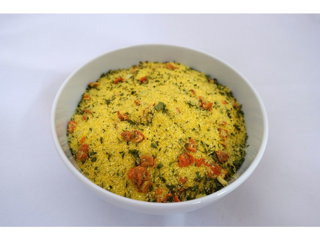SLOŽENÍ: Sůl max. 65-75%, kukuřičná krupice, mrkev, glutaman sodný, petržel nať, pórek, pepř černý, kurkuma, cibule, riboflavin.