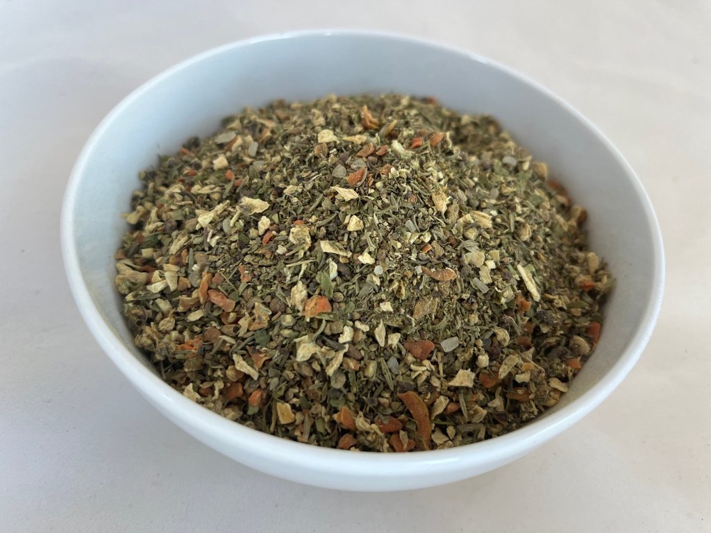SLOŽENÍ: Pepř černý, CELER, mrkev, sůl hrubozrnná 11%, jalovec, tymián, bobkový list, nové koření, petrželová nať.